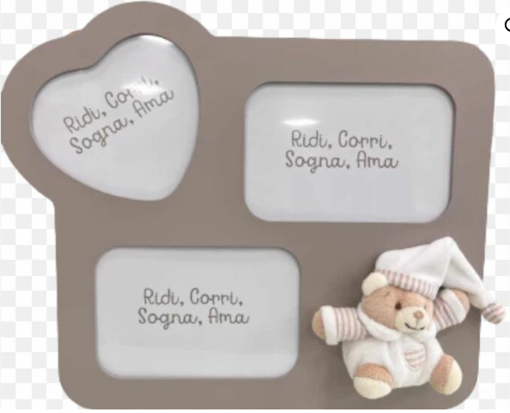 Si tratta di un arredo per la cameretta e di un portafoto per custodire i ricordi dei piccoli. Delicata e sofisticata, in legno laccato tortora può essere esposta ovunque grazie all’applicatore sul retro e al supporto da banco.